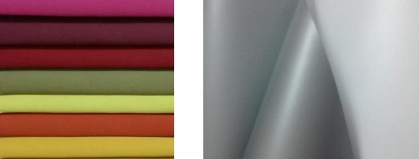 Algunas telas tienen dos capas externas vinílicas, pvc, una base de malla en fibra de vidrio y una película de oscurecimiento intermedia. Es el caso de las telas Black Out vinílicas.